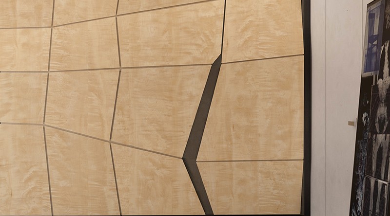 設計理念:?這是火與石的碰撞,沒有火焰,沒有巖石,卻碰撞出勝似火山噴發后的宏偉場景,炭燒處理后的橡木紋理猶如流淌著巖漿的溝壑蜿蜒崎嶇,整一副火光沖天,濃煙滾滾,巖塊飛騰,轟鳴如雷的景象。